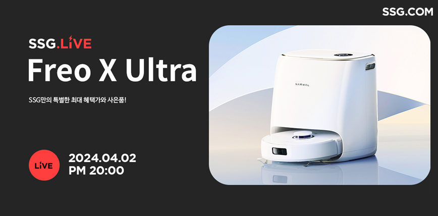 SSG닷컴은 오는 2일 오후 8시부터 7일까지 로봇청소기 ‘나르왈(Narwal)’ 랜더스데이 대표 상품을 단독 판매한다고 1일 밝혔다. 2일 오후 8시부터 자체 라이브커머스 채널 ‘쓱라이브(SSG.LIVE)’에서 판매를 시작하며 ‘프레오 X 울트라(Freo X Ultra) 완성형 올인원 로봇청소기’ 상품을 최대 혜택가 126만원에 구매할 수 있다. 방송 중 구매 고객에게는 선착순 추가 혜택도 제공한다.