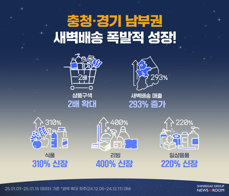 쓱 새벽배송이 신규 권역에서 높은 매출 신장세를 기록하며 성공적으로 자리 잡고 있다. 지난 1월 5일부터 25일까지, 충청권을 포함한 신규 권역의 새벽배송 매출은 전월 동기 대비 80% 증가했으며, 같은 기간 전체 새벽배송 매출도 20% 늘어났다.