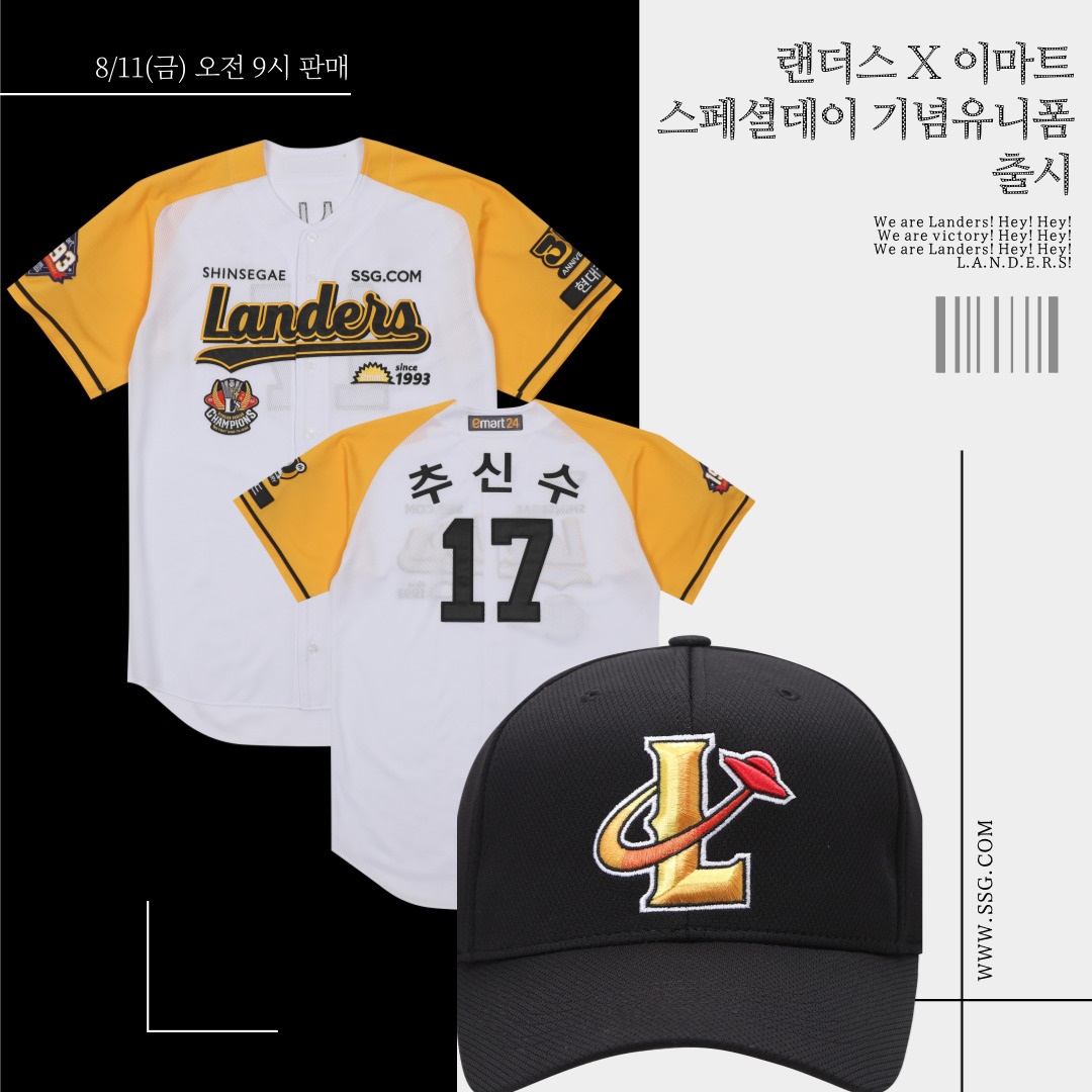 MEDIA 글자 크기 보통 크게 아주 크게 공유하기 페이스북 X 카카오톡 링크 복사 링크 복사됨 도구 보기 이미지 다운로드 SSG닷컴, 이마트 30주년 기념 랜더스 스페셜 유니폼/모자 판매 2023.08.11 SSG.COM