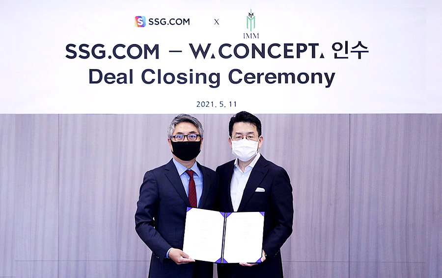 SSG닷컴은 지난 11일 ‘딜 클로징(Deal Closing)’을 열고 W컨셉 지분 100% 매매대금 지급을 완료했다고 12일 밝혔다. 이날 행사에는 강희석 SSG닷컴 대표이사, 송인준 IMM 프라이빗에쿼티 사장이 참석했다.