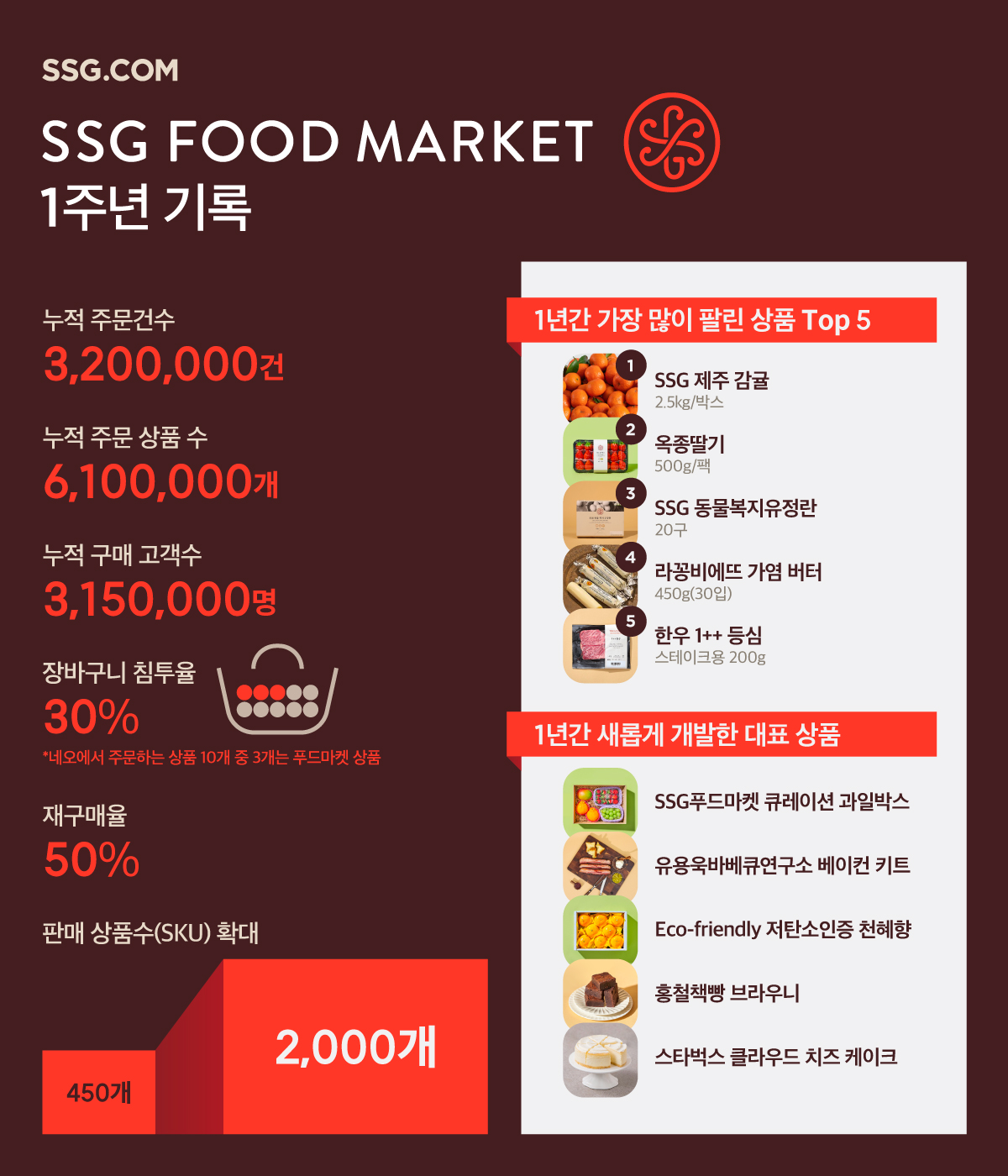 MEDIA 글자 크기 보통 크게 아주 크게 공유하기 페이스북 X 카카오톡 링크 복사 링크 복사됨 도구 보기 이미지 다운로드 SSG닷컴, SSG 푸드마켓 론칭 1주년… 프리미엄 앞세워 상품 경쟁력 강화했다 2022.04.20 SSG.COM