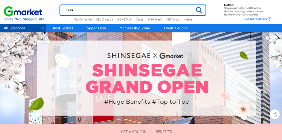 한편, G마켓 글로벌샵은 이번 쓱닷컴 입점을 기념해 오는 4일부터 12일까지 ‘신세계 그랜드 오픈(SHINSEGAE GRAND OPEN)’ 프로모션을 진행한다. 이 기간 G마켓 글로벌샵에서 신세계백화점몰, 신세계몰 상품을 구매하는 고객에게는 구매 금액의 최대 15%까지 할인 가능한 쿠폰이 지급 된다.
