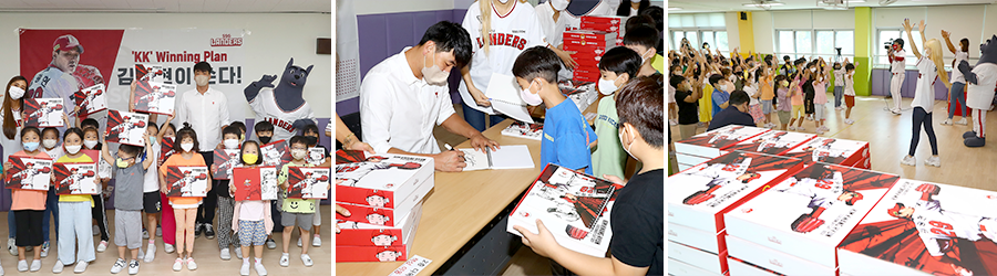 SSG랜더스(대표이사 민경삼, 이하 SSG)의 김광현 선수가 9월 8일(목) 오전 11시에 홈구장인 인천SSG랜더스필드 인근에 위치한 인천남동초등학교에 방문해 초등학교 1학년생 모두에게 ‘KK 드림 기프트’를 전달했다.