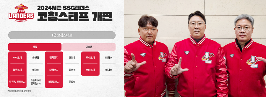 SSG랜더스(대표이사 민경삼, 이하 SSG)는 29일(수) 2024시즌 1군 코칭스태프 구성을 완료했다.
