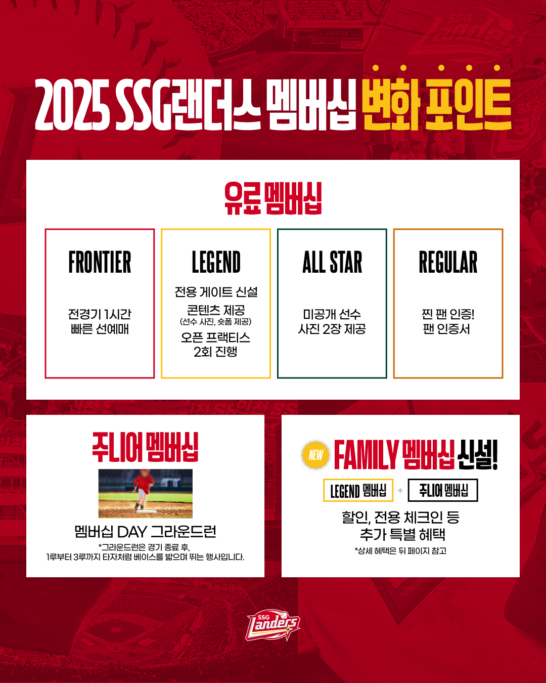 MEDIA 글자 크기 보통 크게 아주 크게 공유하기 페이스북 X 카카오톡 링크 복사 링크 복사됨 도구 보기 이미지 다운로드 SSG랜더스, 2025 멤버십 회원 모집 2025.02.21 신세계야구단