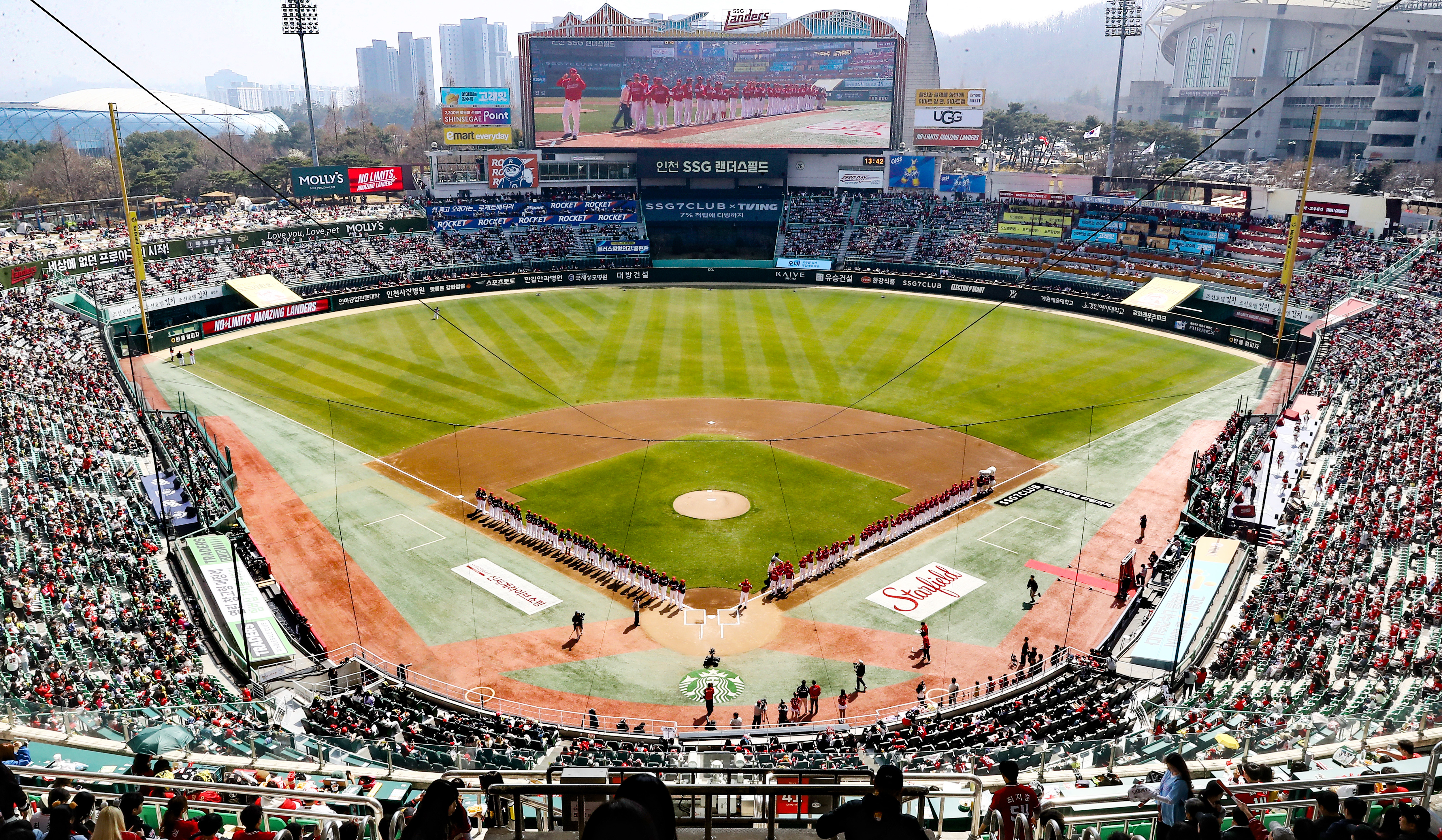 MEDIA 글자 크기 보통 크게 아주 크게 공유하기 페이스북 X 카카오톡 링크 복사 링크 복사됨 도구 보기 이미지 다운로드 SSG랜더스, 4년 연속 개막 2연전 만원 관중 달성 2026.03.31 신세계야구단