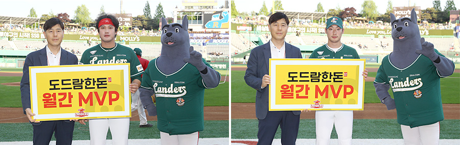 ‘도드람한돈 월간 MVP’는 23시즌부터 월간 성적이 가장 뛰어난 투수와 야수 각 1명을 선정하는 시상으로, 4월 MVP에는 투수 서진용 선수와 야수 최지훈 선수가 뽑혔다.