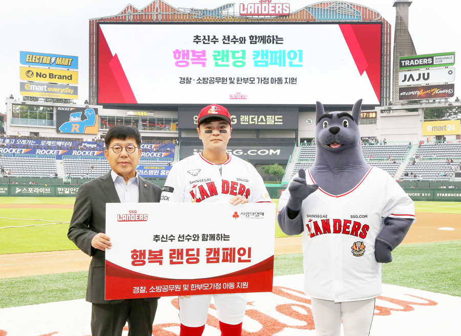 SSG랜더스(대표이사 민경삼, 이하 SSG)의 추신수 선수가 올시즌 순직 경찰·소방공무원 유가족과 저소득 한부모 가정 지원을 위한 ‘행복 랜딩’ 기부 캠페인을 진행한다.