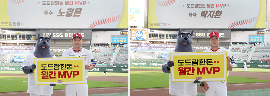 이번 6월에는 투수 노경은, 야수 박지환 선수가 MVP로 선정됐으며, 수상자들의 시상금 중 각 25만원씩 총 50만원과 함께 도드람이 50만원을 더해, 총 100만원이 기부 활동을 위해 적립된다. 해당 적립금은 지역사회 소외계층을 위한 ‘사랑의 반찬’ 기부금으로 사용된다.