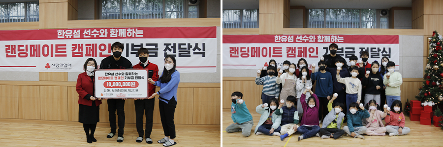 ‘랜딩 메이트 캠페인’은 만 18세라는 어린 나이에 보호시설을 퇴소하여 홀로 자립해야 하는 보호 종료 아동을 위해 한유섬 선수가 참여한 사회 공헌활동으로, 정규 시즌 기록한 1타점 당 10만 원을 적립하는 방식으로 진행됐다.