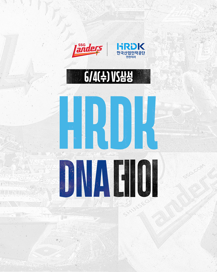 SSG랜더스(대표이사 김재섭, 이하 SSG)가 6월 4일(수) 인천SSG랜더스필드에서 열리는 삼성라이온즈와의 홈경기에 한국산업인력공단 인천지사(지사장 김동구, 이하 HRDK 인천지사)와 함께 ‘HRDK DNA 데이’ 행사를 진행한다.