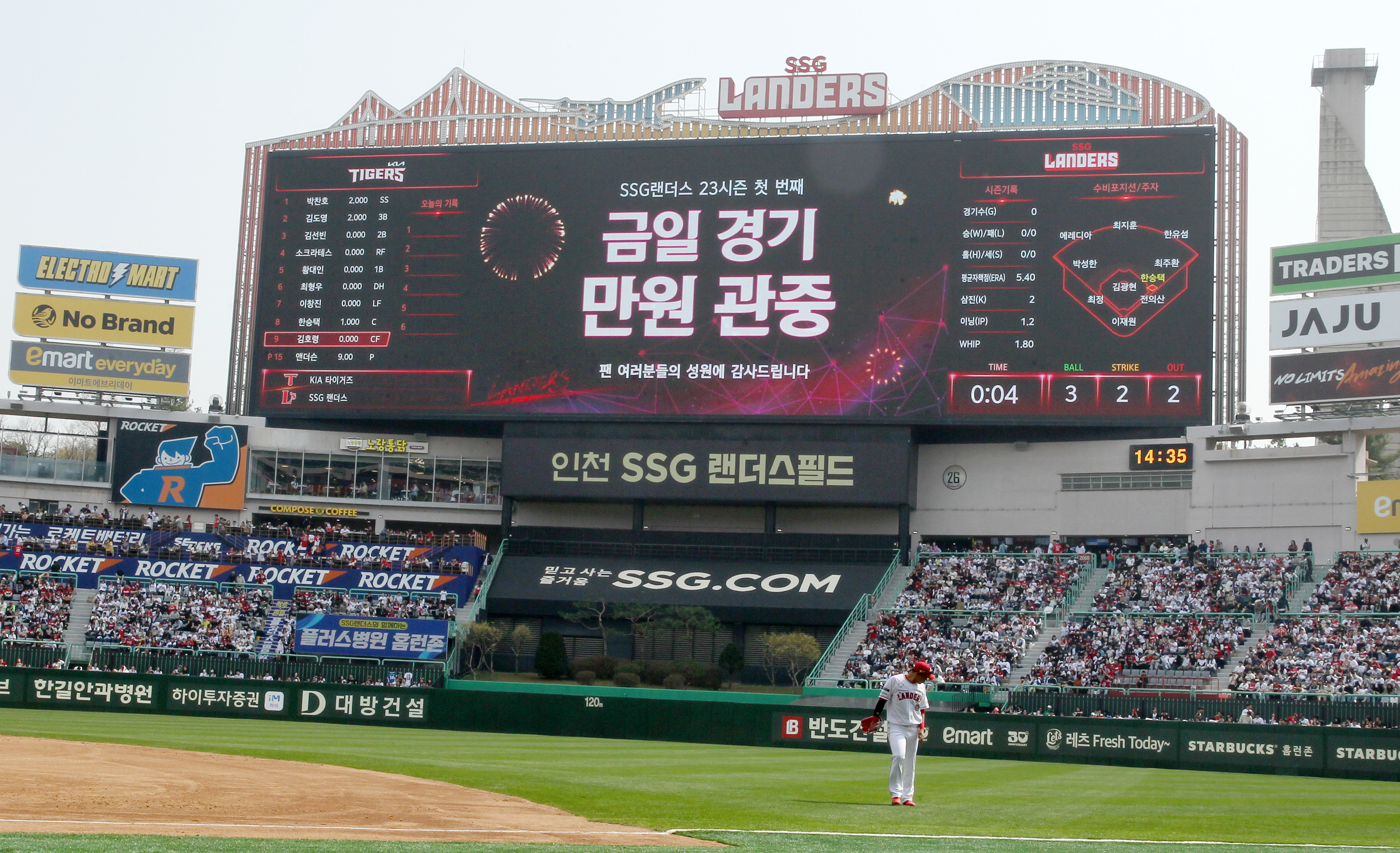 MEDIA 글자 크기 보통 크게 아주 크게 공유하기 페이스북 X 카카오톡 링크 복사 링크 복사됨 도구 보기 이미지 다운로드 SSG랜더스, 인천 연고 첫 개막 2연전 만원 관중 기록 2023.04.03 신세계야구단