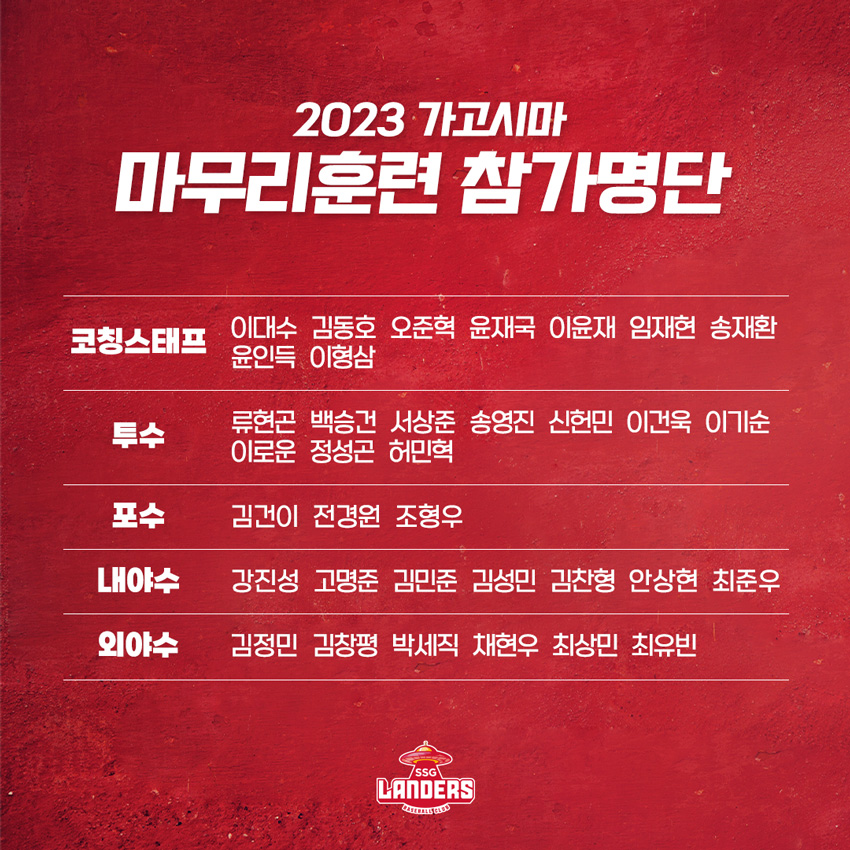 한편, 주전 및 신인 선수들은 인천SSG랜더스필드와 SSG퓨처스필드로 나뉘어 마무리 훈련을 진행할 예정이다.