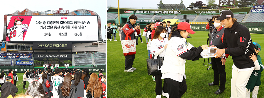 한편, 이날 KK골든벨 이벤트와 더불어 ‘댓글 응원 이벤트’와 ‘김광현 100승 달성 기념 글러브 인증 이벤트’ 등 현장에 오지 못한 팬들을 위한 온라인 행사를 진행해 별도의 선물을 증정했다.