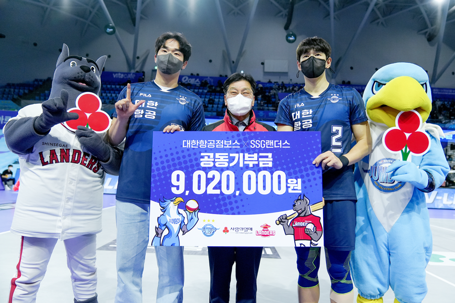 그 이후 SSG는 삼진 226개를 기록하며 452만원을, 대한항공에서는 서브에이스 45개를 기록하며 450만원을 추가로 적립했으며, 총 902만원의 기금을 지난 15일(목) 인천사회복지공동모금회에 전달했다.