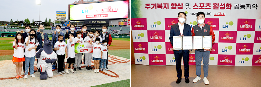 SSG랜더스(대표이사 민경삼, 이하 SSG)가 지난 25일 롯데와의 홈 경기에 앞서 한국토지주택공사(사장 김현준, 이하 LH)와 주거복지 향상 및 스포츠 활성화를 위한 업무협약을 체결했다.