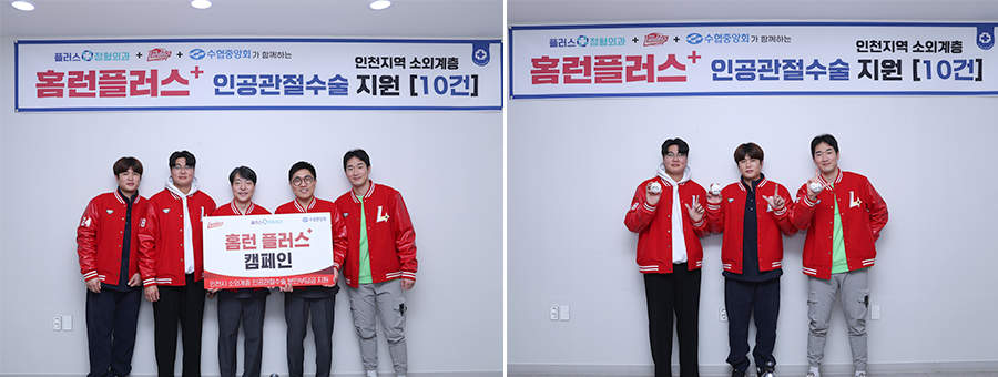 SSG랜더스(대표이사 김재섭, 이하 SSG)는 11일(수) 인천 연수구에 위치한 플러스정형외과의원(대표원장 정새롬, 이하 플러스정형외과)과 함께 ‘홈런플러스+ 캠페인’ 기부금 전달식을 진행했다.