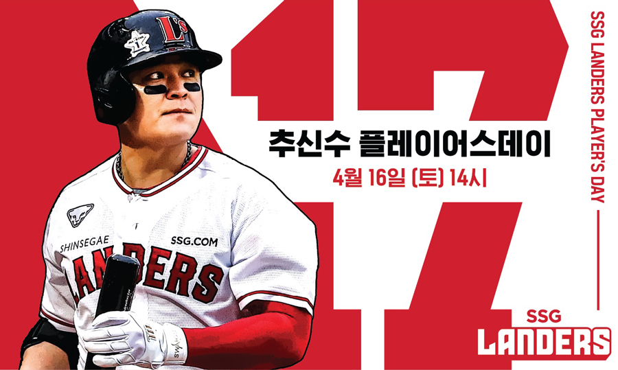 SSG랜더스(대표이사 민경삼, 이하 SSG)는 오는 16일(토) 삼성과의 홈경기에 추신수 플레이어스 데이 이벤트를 진행한다.