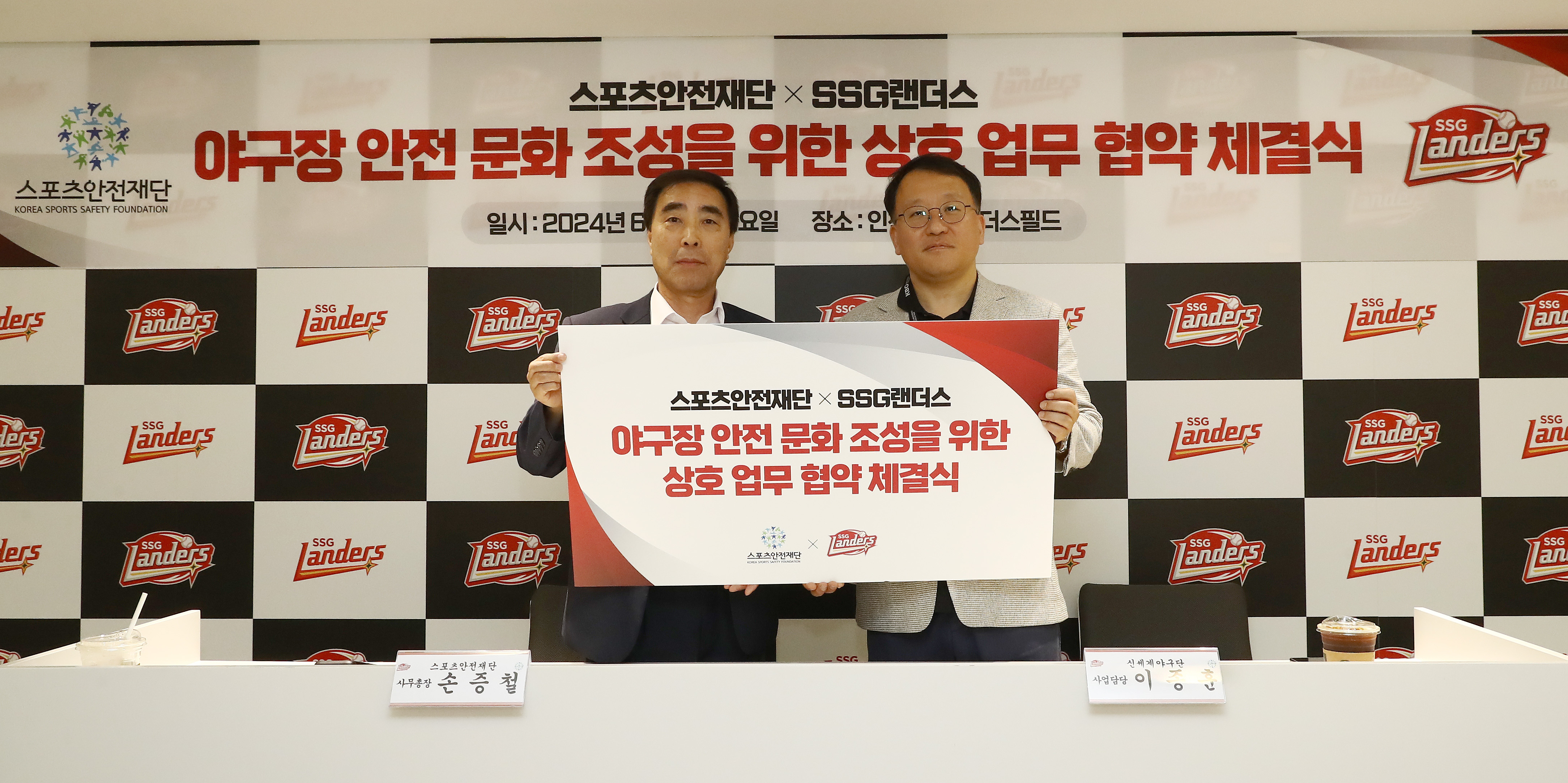 MEDIA 글자 크기 보통 크게 아주 크게 공유하기 페이스북 X 카카오톡 링크 복사 링크 복사됨 도구 보기 이미지 다운로드 SSG랜더스, 스포츠안전재단과 야구장 안전문화 조성 업무 협약 체결 2024.06.24 신세계야구단