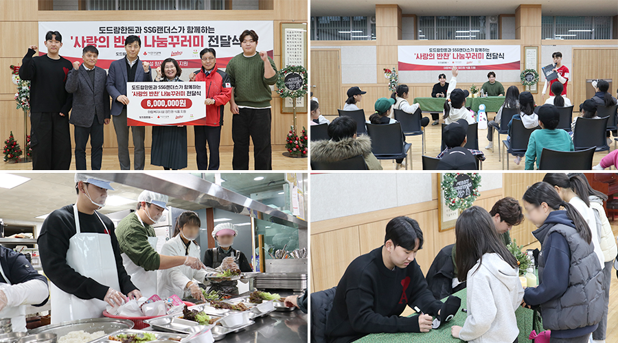 이날 전달식에는 SSG 이로운, 송영진 선수와 도드람 및 SSG의 임직원이 참여했으며, 아이들을 위한 배식 봉사와 함께 다양한 반찬이 담긴 반찬 꾸러미가 전달됐다.