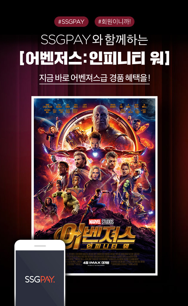 SSG페이는 지난해 영화 <스타워즈: 라스트 제다이> 이벤트에 이어 이번 <어벤져스: 인피니티 워>까지 간편결제 플랫폼 중 유일하게 월트 디즈니 컴퍼니 코리아와 제휴해오고 있다.