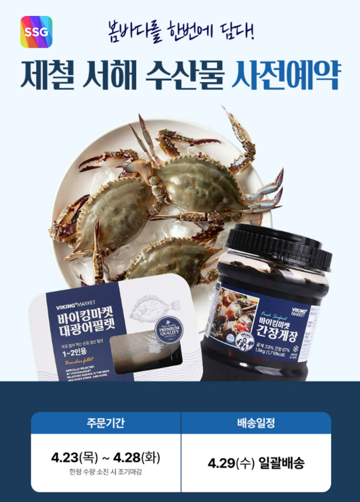 이승재 SSG닷컴 수산MD는 “제철 수산물을 집에서 간편하게 즐길 수 있도록 행사를 준비했다”며 “신선식품 사전 예약 행사를 매달 마련해 제철 먹거리를 합리적인 가격에 선보이겠다”고 말했다.