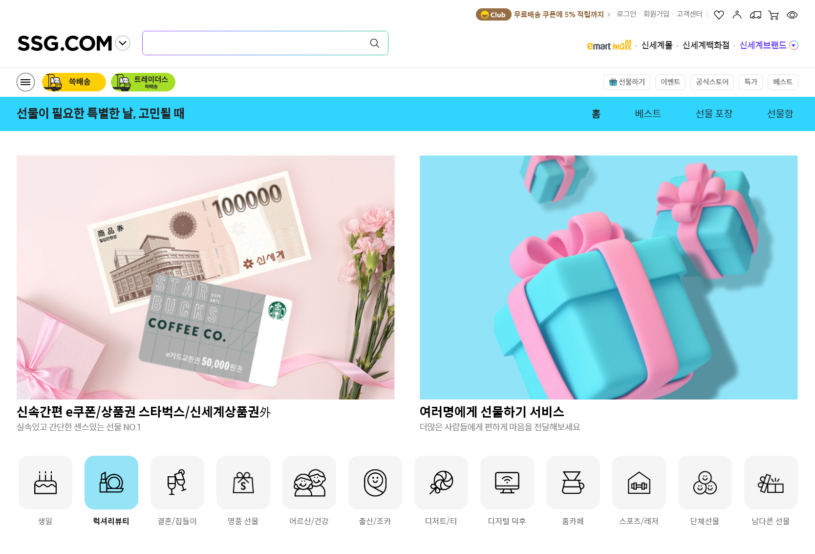 MEDIA 글자 크기 보통 크게 아주 크게 공유하기 페이스북 X 카카오톡 링크 복사 링크 복사됨 도구 보기 이미지 다운로드 SSG닷컴, 가정의 달 ‘선물하기’ 트렌드 공개… 품목은 ‘다다익선’, 품질은 ‘고고익선’ 2023.05.11 SSG.COM