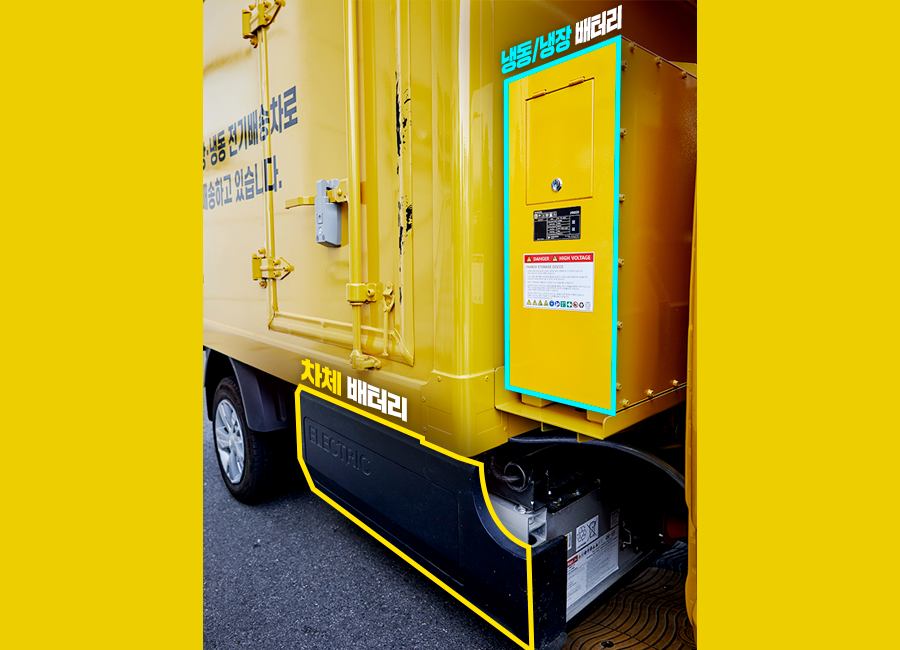 차량 동력 배터리와 냉장·냉동고 배터리를 이원화한 것이다. 각각의 배터리 전력 소비를 최소화하여 주행거리와 온도유지를 최적화하는 기술이다. 또, 냉장·냉동고 문을 열었을 때는 냉동고 팬이 잠시 멈춰 외부 온도 유입을 차단하며 적정 온도유지가 가능하도록 구축했다. 향후 친환경 냉장·냉동 전기 배송차는 3.5톤까지 확대할 계획이다.