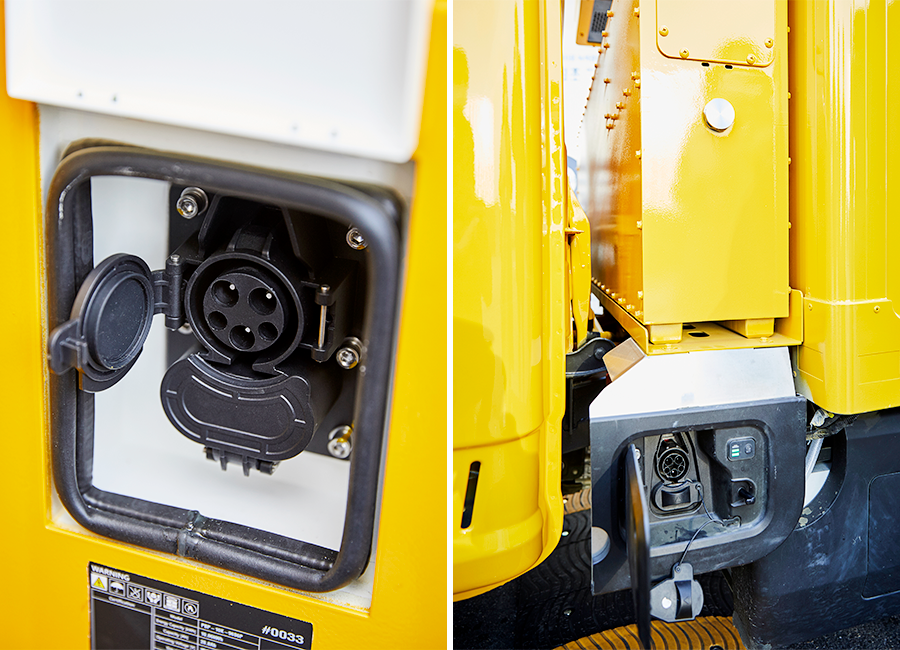 충전 효율의 최적화를 위해 분리한 냉장·냉동고 충전 커넥터와(좌) 차체 충전 커넥터(우)