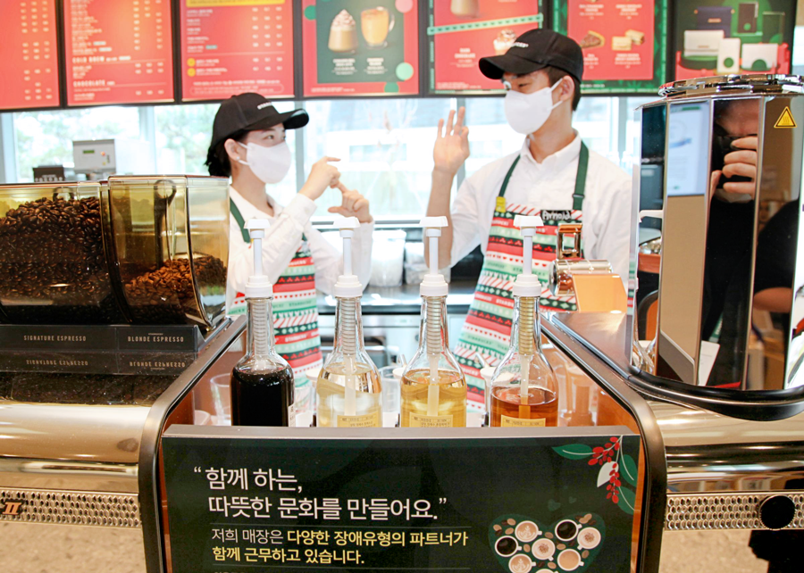 2007년부터 장애인 바리스타 채용을 시작한 스타벅스는 2012년에는 업계 최초로 한국장애인고용공단과 고용증진 협약을 체결해 장애 유형과 정도의 구분 없이 분기별 장애인 채용을 시행하고 있다.