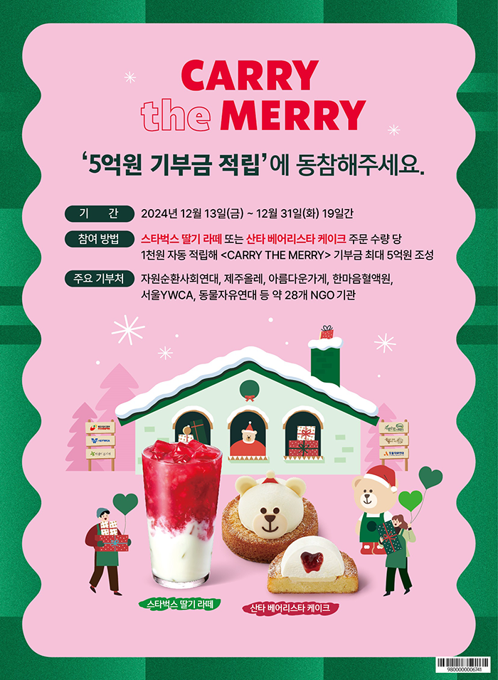 ‘캐리 더 메리(CARRY the MERRY)’는 스타벅스가 연말 지역사회에 따뜻한 나눔을 전하고자 2020년부터 5년째 진행하는 연중 최대 규모의 기금 적립 행사다.