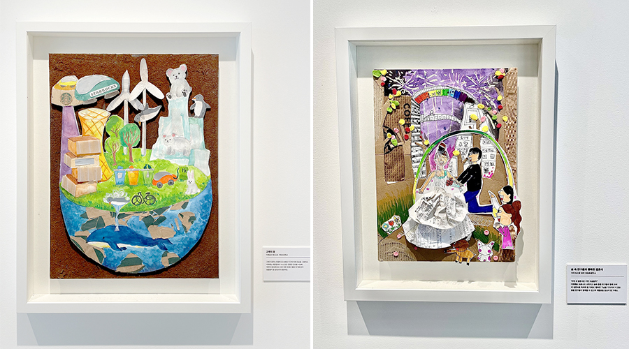 대표적으로 고학년부 이예담 학생(가현초, 4학년)의 작품 <고래의 꿈>은 폐플라스틱을 미래 풍력발전소의 날개로, 스타벅스 종이가방을 지구본의 육지로 사용하고 커피박을 작품의 배경으로 활용해 “친환경 연료를 통해 지구를 지켜 동물들이 멸종위기의 위험 없이 함께 잘 살았으면 좋겠다”는 메시지를 담았다.