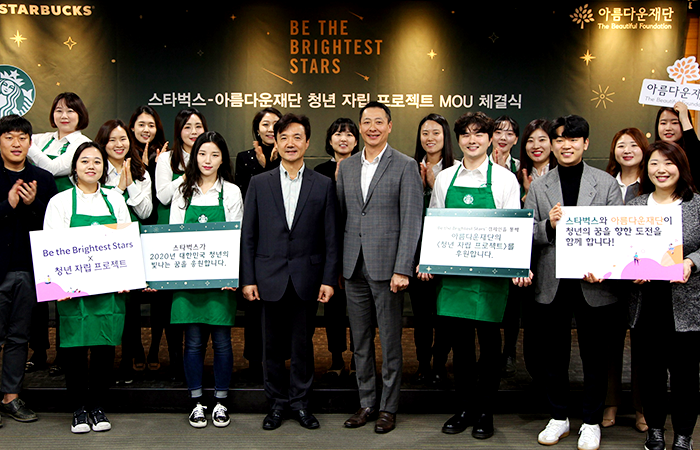 ㈜스타벅스커피 코리아(대표이사 송호섭) 가 지난 8일 아름다운재단과 ‘보호종료청년’ 지원에 관한 협약식을 체결하며, 새해 첫 사회공헌활동을 개시했다.