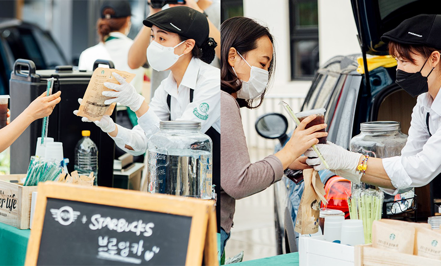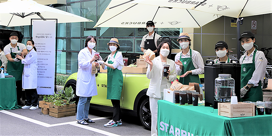 스타벅스커피 코리아가 프리미엄 소형 자동차 브랜드 MINI 코리아와 협업한 ‘MINI+STARBUCKS Brewing Car’(브루잉 카) 캠페인을 통해 우리 지역사회를 위해 힘쓰는 1,300명에게 음료와 감사의 마음을 전달하며, 성공적인 ‘Brewing Car’ 운영을 마무리했다.