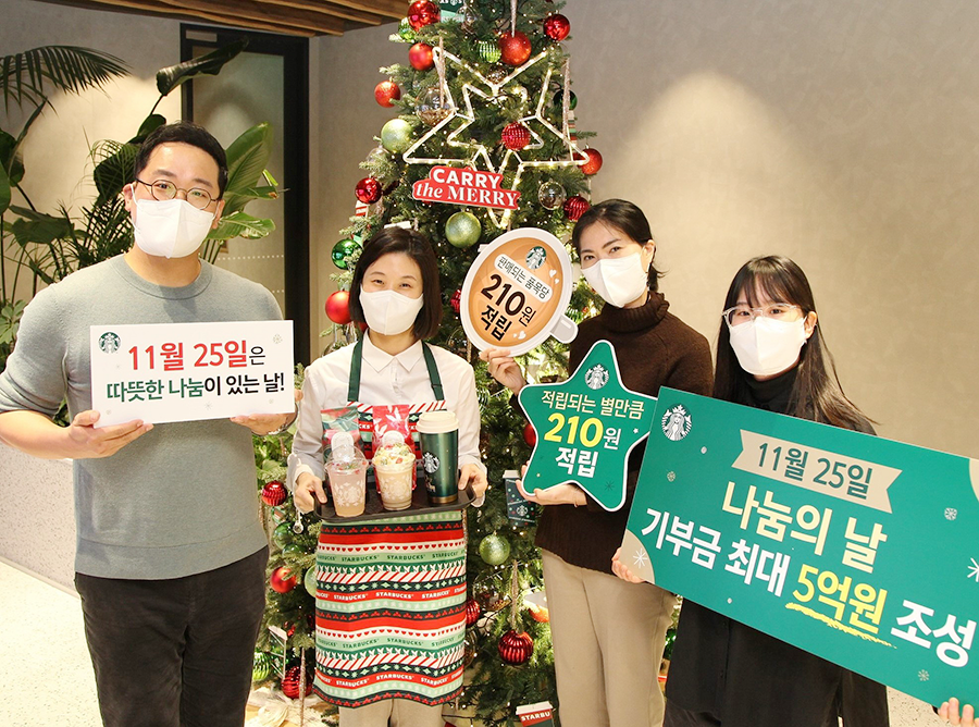 앞서 스타벅스는 올해 개점 21주년을 기념해 크리스마스 시즌 기금 2억 1천만원을 지역사회에 기부할 것을 약속했다. 이와 함께, 나눔의 날을 전개하며 누적 최대 5억원의 기금을 청년, 환경, 지역사회 등 스타벅스의 주요 사회공헌 활동에 함께 하고 있는 지역사회 기관 및 NGO 단체에 전달할 예정이다.