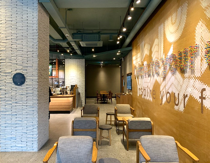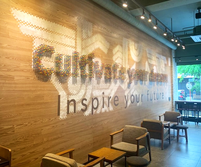 우선 창업가를 응원하는 아트 월 조성 및 공간 구성 등 청년 창업가들에게 창의적이며 진취적인 영감을 불어 넣을 수 있는 차별화된 인테리어를 적용했다. 아트월은 커뮤니티 스토어 1호점을 통해 활동하고 있는 스타벅스 청년인재들이 청년창업가들을 응원하는 메시지를 담은 캡슐 등으로 설치한 것으로, 총 2,400여개의 캡슐이 모여 ‘Cultivate your dream’이라는 희망의 문구로 완성됐다.