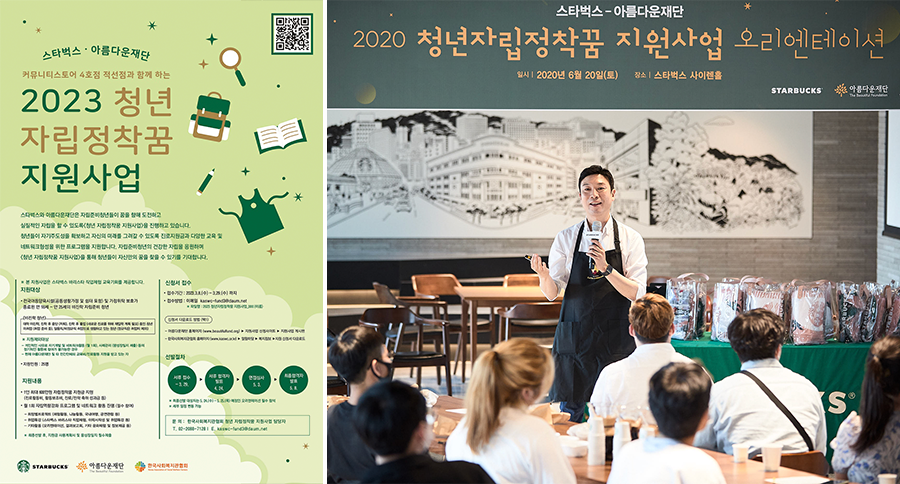 또한, 커뮤니티 스토어 4호점 (스타벅스 적선점)을 통해 아름다운재단과 함께하는 ‘2023 청년 자립정착꿈 지원사업’ 대상자를 오는 3월 29일까지 모집한다.