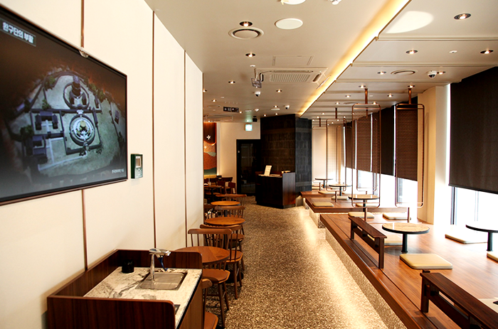 매장 내부의 음료제조 탁자와 건물 기둥에는 환구단 석조삼문(石造三問: 황궁우로 가는 정문)의 벽돌 모양을 반영했고, 상품판매 진열장은 환구단 단지 내 기단 위에 있는 황궁우의 팔각지붕을 반영하였다. 또한, 매장 안에는 디지털 커뮤니티 보드를 설치해 환구단의 역사와 문화유산 가치를 소개하는 영상을 상영한다. 이 외에도, 한옥을 현대적으로 해석해 매장 안에 좌식 공간과 방석, 디딤돌, 창호 형식의 가림막을 설치해 우리 문화유산과 전통문화의 미를 조화롭게 표현하였다.