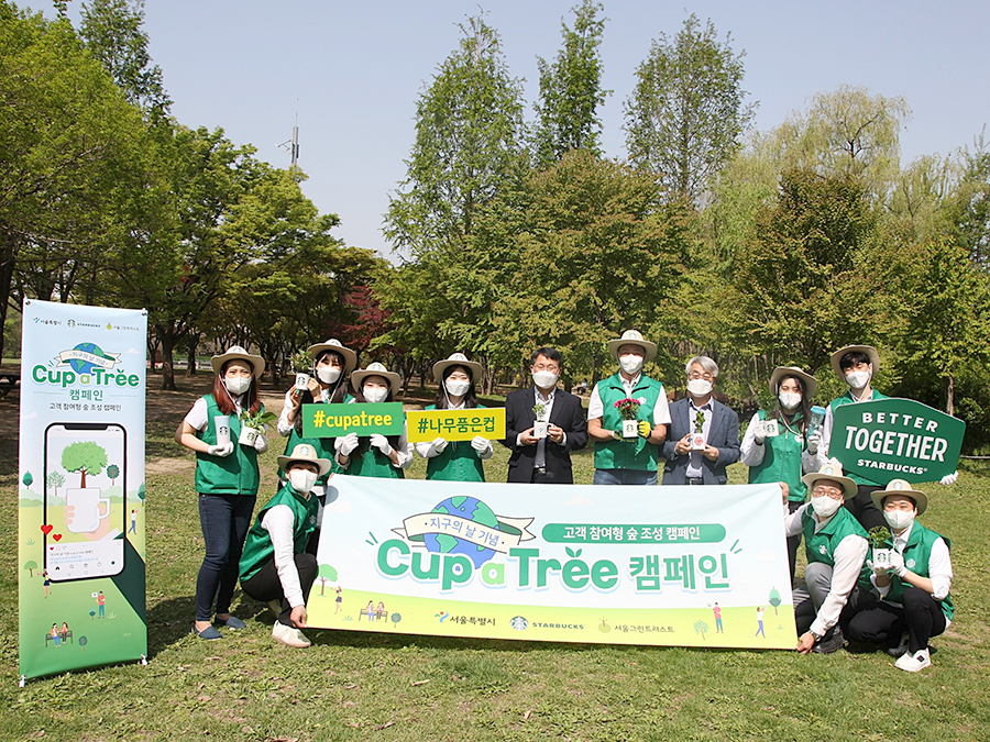 ㈜스타벅스커피 코리아(대표이사 송호섭)가 4월 22일부터 5월 6일까지 고객과 함께하는 ‘Cup a Tree(나무품은컵)’ 캠페인을 전개하고, 서울시, 서울그린트러스트와 함께 최대 220평의 숲을 조성한다.