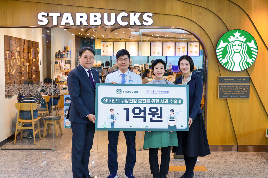 스타벅스 코리아(대표이사 손정현)가 취약계층 장애인의 구강건강 증진을 위한 치과 수술비 지원 기금 1억 원을 서울대학교치과병원에 전달했다.