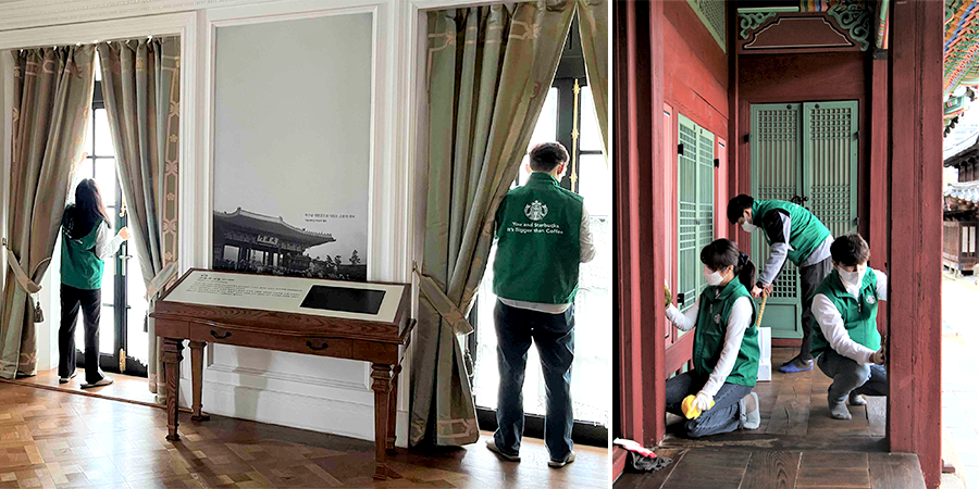 스타벅스는 지난 1월 17일 스타벅스 파트너 30여명과 함께 덕수궁을 찾는 방문객들의 쾌적한 고궁 관람을 위해 덕수궁 석조전의 마루와 창틀, 기둥 등의 정화 활동을 진행했다. 이와 함께, 석조전에서 진행되는 전시 프로그램 후원 등을 위한 1천만원의 문화재 보호기금을 전달했다.