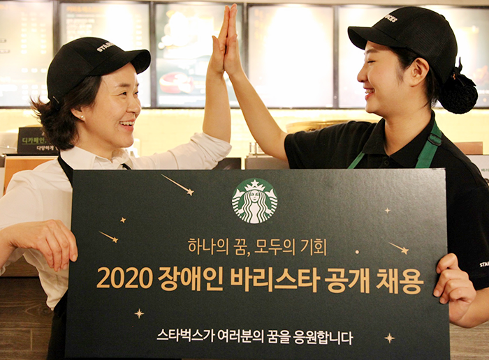 스타벅스는 2007년부터 본격적인 장애인 채용을 시작했다. 2012년에는 한국장애인고용공단과 고용증진 협약을 체결하고 분기별로 장애인 바리스타 채용 모집을 진행하고 있다. 2018년 7월에는 한국장애인개발원과 장애인 현장 직업훈련 협력을 위한 업무 협약을 맺고 지속적인 장애인 일자리 창출을 약속한 바 있다.
