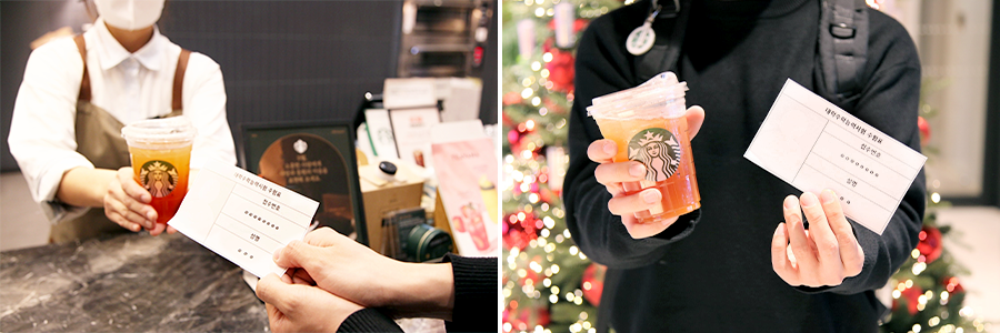 사이즈 업그레이드 혜택은 수험표 1장당 대상 음료 1잔에 적용 가능하며, 통신사 및 개인컵 이용 혜택도 중복 적용 가능하다. 조건이 충족된다면 별 적립과 겨울 e-프리퀀시 스티커 적립도 받을 수 있다.