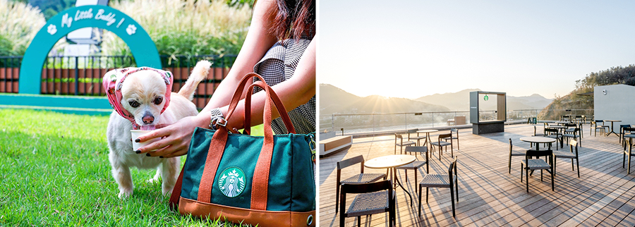 해당 매장은 1층 고객과 반려동물이 함께 놀이를 즐길 수 있는 28평 규모의 실내 펫 전용 공간이 있어 날씨와 관계없이 방문할 수 있으며, 자유롭게 뛰노는 야외 펫 파크도 마련돼 있다. 2만 원 이상 구매 시 반려동물용 음료인 ‘퍼푸치노’도 제공한다.