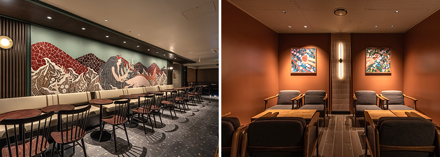 매장을 들어서면 토양을 나타내는 흙빛 타일 인테리어가 적용된 1층 공간이 고객을 차분하게 맞이하고, 아이보리와 화이트 톤 두 개의 구역으로 나뉜 2층의 각 공간은 씨뿌리기와 꽃피우는 순간을 표현했다. 한 층을 올라가면 꽃이 무르익어가는 여정을 그린 아트웍과 커피 수확의 순간을 연상시키는 모자이크 타일 아트웍이 수확의 기쁨을 나타내며 커피 여정을 마무리 짓는다.