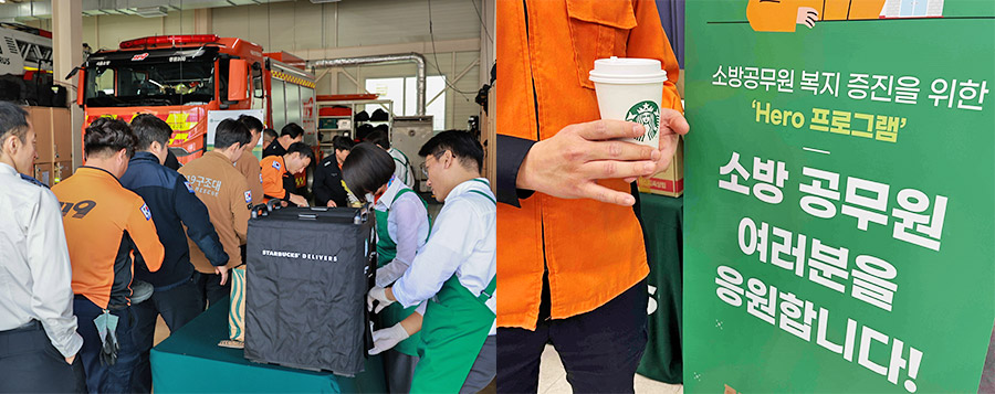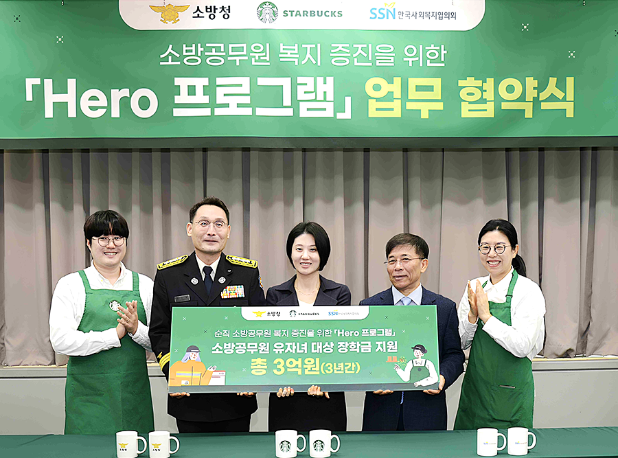스타벅스 코리아(대표이사 손정현)가 소방공무원을 ‘히어로(영웅) 지원 프로그램’의 대상자로 선정하고 복지 혜택 마련을 위한 업무 협약을 맺었다.