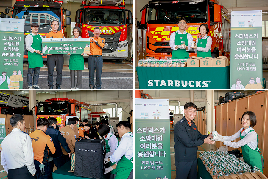 스타벅스는 11월 5일 서울소방재난본부가 선정한 종로소방서에서 서울지역 소방서 8개소 1,190명의 소방관들을 위한 커피와 푸드 전달식을 진행했다.