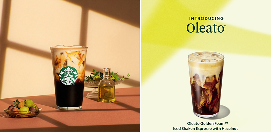 한국에서 선보이는 올레아토 음료는 엑스트라 버진 올리브 오일이 들어간 골든 폼과 달콤한 헤이즐넛에 부드러운 블론드 샷의 조화가 매력적인 ‘올레아토 골든폼 아이스 쉐이큰 에스프레소 with 헤이즐넛’ 음료이다.