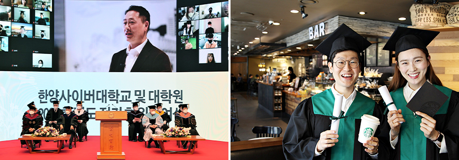 한편 한양사이버대학교는 이번 학위 수여식에 스타벅스 파트너 우수 졸업생을 위한 특별 성적 우수상을 제정했으며, 스타벅스 강남우성점의 관광호텔경영학과 김병엽 파트너와 킨텍스이마트점의 영어학과 서경희 파트너가 대표로 수상했다.
