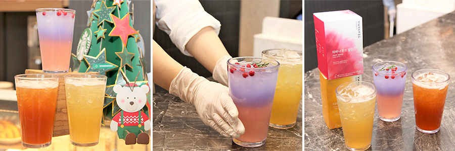 이는 최근 MZ 세대를 중심으로 티 베이스 음료가 독특한 풍미와 색감 등을 통해 주목받으며 인기를 끌고 있는 트렌드를 반영하고 있다. 일례로 2020년 첫 출시 이후 1,000만 잔 달하는 누적 판매 기록한 스타벅스의 대표적 겨울 음료인 ‘오로라 캐머마일 릴렉서’는 스타벅스 리워드 회원 중 20대의 구매 비율이 가장 높게 나타났다.